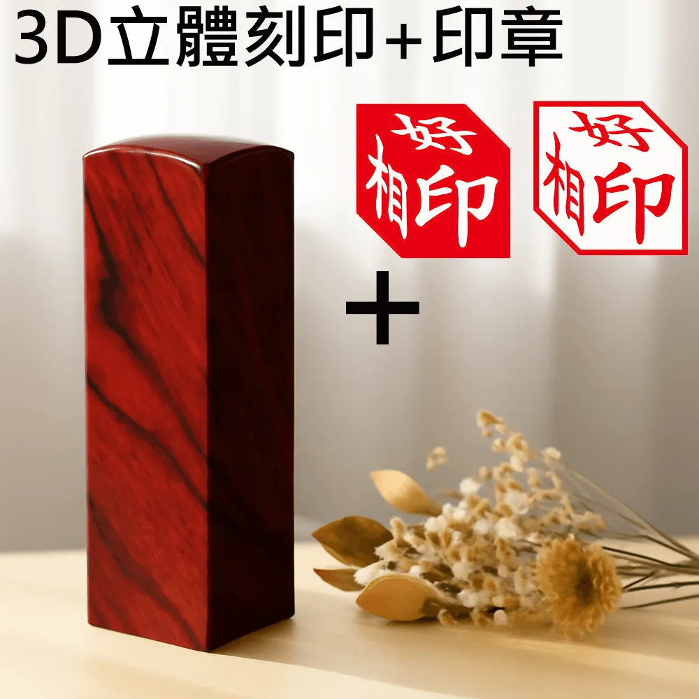 - 立體章由三個平面組成,因此刻印姓名必須為3個字,且僅支援中文姓名。